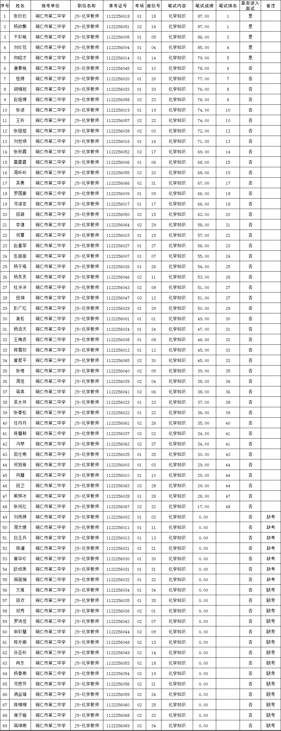 附件:2022年銅仁市碧江區(qū)教育系統(tǒng)公開引進高層次及急需緊缺人才筆試成績排名